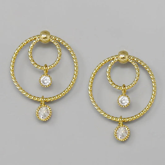 Sliding CZ Stone Gold Dipped Hoop Drop Earrings