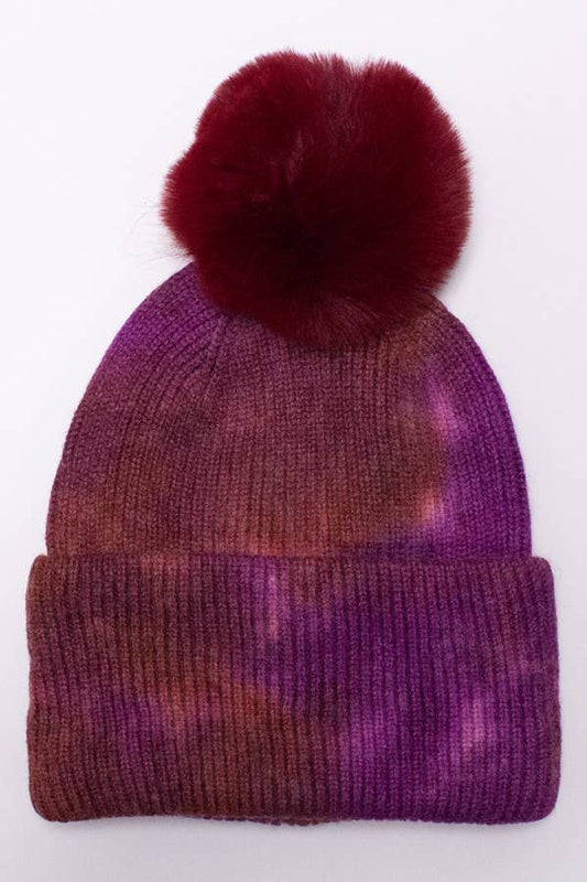 Tie Dye Knitted Fur Pom Beanie