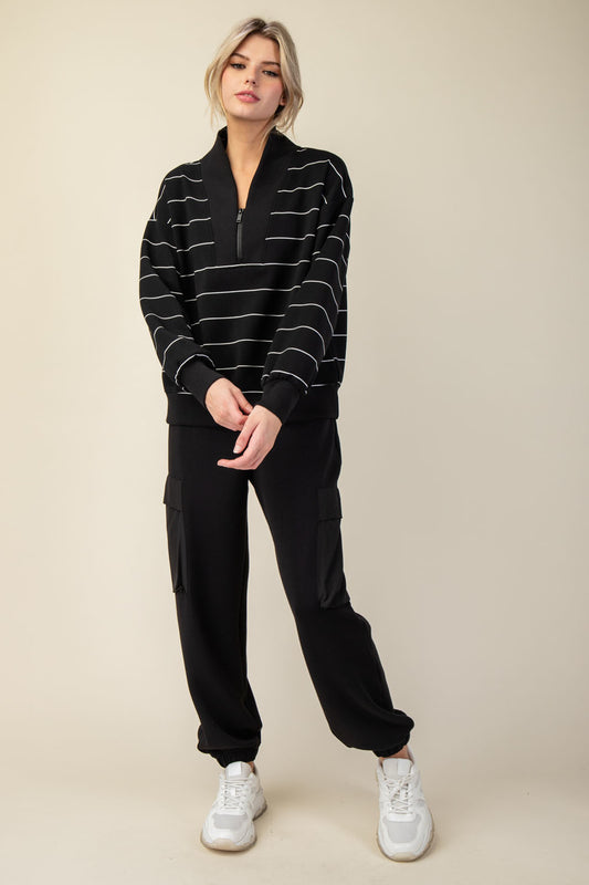 Scuba Luxe V-Neck Black Striped 3/4 Zip