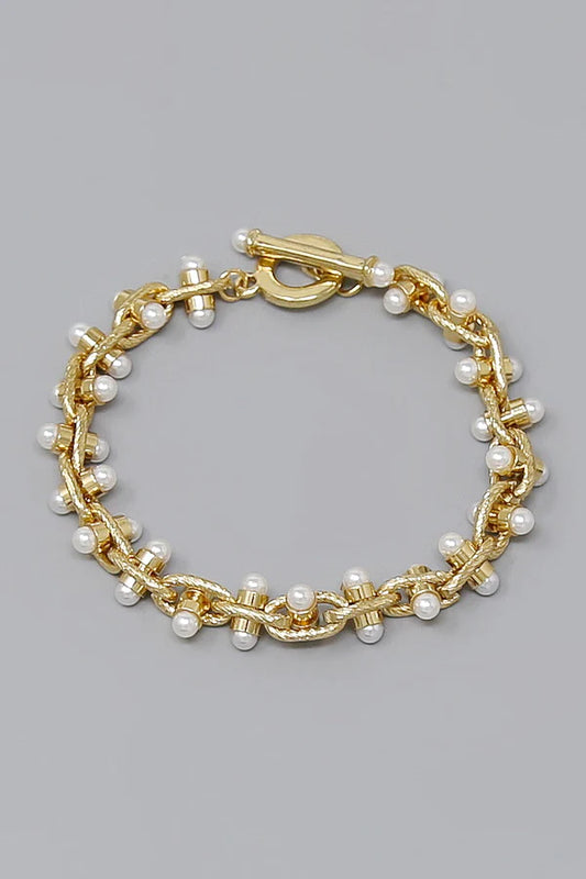 Pearl Accent Hardware Link Bracelet