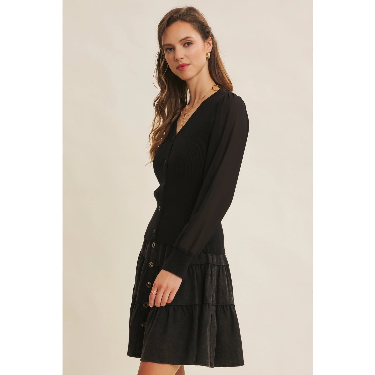 Ribbed Sweater Cardigan with Chiffon Sleeves